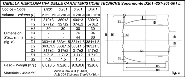 SPECICHE TECNICHE DEI NOSTRI CONTENITORI KEG DIN D201 - D251 - D301 - D501 L |
